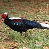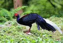 蓝鹇是雉科、鹇属一种大型雉类。体长50-80厘米。雄鸟头颈黑色,羽冠白色,有时杂以黑斑;脸红色,额部肉冠和脸部肉垂亦为红色;后颈和颈侧蓝黑色;肩赤红色;翅上覆羽及外侧次级飞羽黑色,…全部>>