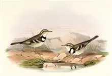 山鹡鸰:是中等体型的林鹡鸰,体长约17厘米,主要羽色为褐色及黑白色。头部和上体橄榄褐色,眉纹白色,从嘴基直达耳羽上方,下体白色,胸部具有两道黑色横斑纹,下面的横斑纹有时不连续。两翼黑褐色,…全部>>