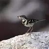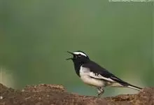 日本鹡鸰:体长约20厘米。上体多黑色,额、颏及眉纹白,下体白,两翼黑而具白色横斑及羽缘,尾黑而边缘白色。虹膜深褐色;嘴黑色;脚黑色。飞行时发出嘁喳声,具复杂而独特的鸣声。喜农田、稻田和溪流。…全部>>