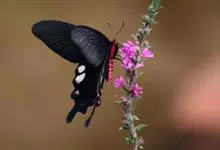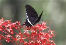 玉斑凤蝶Papilio helenus 别名白纹凤蝶,是凤蝶科凤蝶属美凤蝶亚属大型种类。雌雄同型;体翅皆黑色,后翅正面中室外有3个并列的白色斑,亚外缘有1列模糊的新月形红色斑,…全部>>