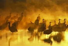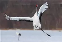 丹顶鹤:是鹤科、鹤属的一种大型涉禽,体长120-160厘米。颈、脚较长,通体大多白色,头顶鲜红色,喉和颈黑色,耳至头枕白色,脚黑色,站立时颈、尾部飞羽和脚黑色,头顶红色,…全部>>