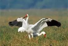 丹顶鹤:是鹤科、鹤属的一种大型涉禽,体长120-160厘米。颈、脚较长,通体大多白色,头顶鲜红色,喉和颈黑色,耳至头枕白色,脚黑色,站立时颈、尾部飞羽和脚黑色,头顶红色,…全部>>