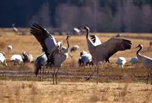 灰鹤是鹤形目鹤科鹤属鸟类,别名千岁鹤、玄鹤、番薯鹤、普通鹤、元鹤。通体羽色几乎全为灰色;前额和眼先黑色,头顶裸区部分呈朱红色,…全部>>