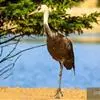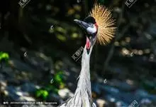 东非冕鹤是大型涉禽。体长127厘米。额部向外凸出,有乌黑色绒羽,枕部有由无数条土黄色绒丝向四周放射所形成的绒球状冠羽。眼睛后方的面颊有上红下白的斑块。颈长。喉部有红色肉垂。体羽主要为浅蓝灰色,…全部>>