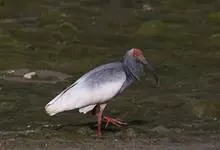 圣鹮头、颈黑色,身体白色,初级和次级飞羽尖端黑色。喙长且厚、黑色下弯,跗蹠与趾黑色。下背部有大量黑色纱状装饰羽,翼下裸露皮肤红色,体侧有时带黄褐色。亚成鸟的头、颈有羽毛,斑驳黑色带有白色纵纹,…全部>>