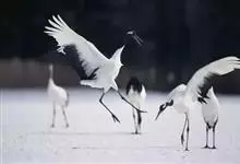丹顶鹤:是鹤科、鹤属的一种大型涉禽,体长120-160厘米。颈、脚较长,通体大多白色,头顶鲜红色,喉和颈黑色,耳至头枕白色,脚黑色,站立时颈、尾部飞羽和脚黑色,头顶红色,…全部>>