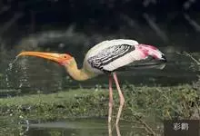 彩鹳:鹳科、鹮鹳属的鸟类。体长93-102厘米,体重2-3.5千克。橙黄色的嘴粗而长,但嘴尖稍微向下弯曲。脚为红色,也特别长,胫的下部裸出。橙色的头部赤裸无羽,繁殖期变为红色。体羽主要为黑色和白色,…全部>>