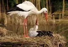 白鹳,是鹳形目鹳科鹳属鸟类。白鹳曾确定为3个亚种:指名亚种、中亚亚种和东方亚种。其体长约111厘米。嘴形直、粗厚而侧扁;体羽除飞羽黑色具铜绿色金属光泽外,余部均为白色;眼周裸区、脚、趾红色,嘴黑色。…全部>>