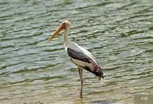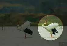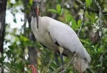 彩鹳:鹳科、鹮鹳属的鸟类。体长93-102厘米,体重2-3.5千克。橙黄色的嘴粗而长,但嘴尖稍微向下弯曲。脚为红色,也特别长,胫的下部裸出。橙色的头部赤裸无羽,繁殖期变为红色。体羽主要为黑色和白色,…全部>>