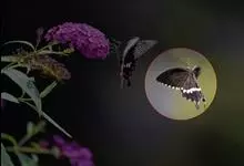 玉带凤蝶是鳞翅目凤蝶科凤蝶属昆虫,又称白带凤蝶、黑凤蝶、缟凤蝶、梁山伯凤蝶。雄蝶前翅外缘、后翅中央有7个大型黄白斑,排列成带。老熟幼虫深绿色,头部黄褐色,后胸前缘有1条齿状的黑色线状横纹,…全部>>