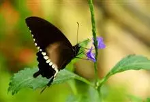 玉斑凤蝶Papilio helenus 别名白纹凤蝶,是凤蝶科凤蝶属美凤蝶亚属大型种类。雌雄同型;体翅皆黑色,后翅正面中室外有3个并列的白色斑,亚外缘有1列模糊的新月形红色斑,…全部>>