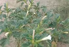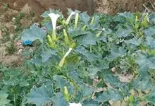 曼陀罗,茄科曼陀罗属一年生大型草本植物,全株光滑。有臭气;叶呈广卯形,边缘具不规则波状浅齿裂;花单生于枝杖间或叶腋,直立,有短梗;花萼是筒状裂片三角形,颜色为白色或淡紫色;果实为蒴果卵状,…全部>>