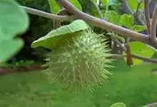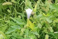 曼陀罗,茄科曼陀罗属一年生大型草本植物,全株光滑。有臭气;叶呈广卯形,边缘具不规则波状浅齿裂;花单生于枝杖间或叶腋,直立,有短梗;花萼是筒状裂片三角形,颜色为白色或淡紫色;果实为蒴果卵状,…全部>>
