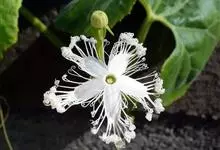 蛇瓜是葫芦科栝楼属的一年生攀援藤本植物。别名蛇豆。茎被柔毛及疏长柔毛状硬毛;叶圆形或肾状圆形,先端圆钝或宽三角形,叶基弯缺深心形;花雌雄同株,苞片钻状披针形,萼筒密被毛,裂片呈窄三角形,花冠白色,…全部>>