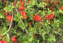贴梗海棠 Nakai)是蔷薇科、木瓜海棠属植物。落叶灌木,高达2米,枝条直立开展,有刺。叶片卵形至椭圆形,稀长椭圆形,长3-9厘米,宽1.5-5厘米。花先叶开放,3-5朵簇生于二年生老枝上。…全部>>