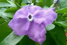 鸳鸯茉莉,茄科鸳鸯茉莉属常绿灌木植物,高1米。茎皮深褐色;分枝力强;单叶互生纸质;花簇生,聚伞花序,花冠五裂花瓣锯齿,含苞时蘑菇状深紫色,花香浓郁;花期4-10月。鸳鸯茉莉花朵芳香,…全部>>
