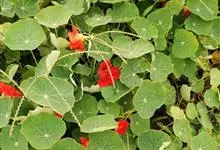旱金莲是旱金莲科旱金莲属蔓生一年生草本植物。叶互生,叶柄向上扭曲,盾状,叶圆形,具波状浅缺刻,下面疏被毛或有乳点;花黄、紫、桔红或杂色,花托杯状,花瓣为圆形,边缘具缺刻;果实为扁球形;花果期6-10月,…全部>>