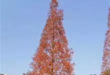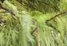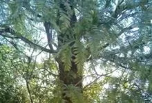 落羽杉 Rich.),杉科落羽杉属木本植物。树干尖削度大,基部通常膨大,具膝状呼吸根,树皮棕色,裂成长条片;一年生小枝褐色,侧生短枝;叶线形;球果具短柄,熟时淡褐黄色,被白粉;花期3月;球果10月成熟。…全部>>