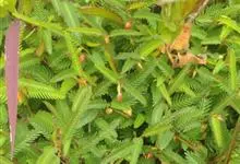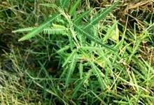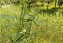 合萌,别名田皂角、水松柏、水槐子、水通草,中药名:梗通草。豆科一年生草本或亚灌木状植物,茎直立,叶对生,总状花序,腋生,花萼膜质,花冠淡黄色,子房扁平,线形。种子黑棕色,肾形,花果期7~10月。…全部>>