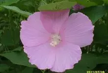 芙蓉葵是锦葵科木槿属植物,又名草芙蓉、大花秋葵,原产于北美。落叶灌木状。叶大、广卵形,叶柄、叶背密生灰色星状毛。花大,单生于叶腋,有白、粉、红、紫等色。喜阳、略耐阴,宜温暖湿润气候,忌干旱,耐水湿,…全部>>