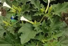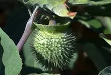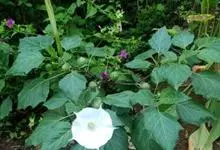 曼陀罗,茄科曼陀罗属一年生大型草本植物,全株光滑。有臭气;叶呈广卯形,边缘具不规则波状浅齿裂;花单生于枝杖间或叶腋,直立,有短梗;花萼是筒状裂片三角形,颜色为白色或淡紫色;果实为蒴果卵状,…全部>>