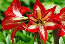 朱顶红 H. E. Moore),石蒜科属多年生草本植物,鳞茎近球形,并有匍匐枝;叶鲜绿色,带形;花茎中空,稍扁,具有白粉,圆筒状,花被裂片长圆形,顶端尖,红色,略带紫色;花丝红色,…全部>>