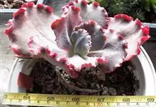 女王花笠,又名扇贝石莲花、女王花舞笠,是景天科拟石莲花属的多肉植物。由美国加利福尼亚州的育种师Dick Wright于1964年培育。特征是呈大波浪状褶皱的红色叶缘和气质高贵的粉紫色调。…全部>>