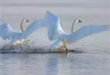 小天鹅为大型水禽,体长110~130厘米,体重4~7千克,雌鸟略小。它与大天鹅在体形上非常相似,同样是长长的脖颈,纯白的羽毛,黑色的脚和蹼,身体也只是稍稍小一些,颈部和嘴比大天鹅略短,但很难分辩。最…全部>>