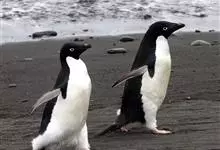 阿德利企鹅在企鹅家族中属中、小型种类,体长72-76厘米,和许多种类企鹅一样,雌鸟和雄鸟同形同色,从外形难以辨认。眼圈为白色,头部呈蓝绿色,嘴为黑色,嘴角有细长羽毛。羽毛由黑、白两色组成,…全部>>