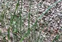 节节草,是木贼科木贼属的一种中小型蕨类植物,又名笔杆草、多枝木贼、节节木贼等。节节草根茎直立,黑棕色,节和根疏生黄棕色长毛或光滑无毛。地上枝多年生。枝一型,绿色,主枝多在下部分枝。侧枝较硬,圆柱状,…全部>>