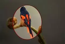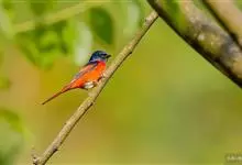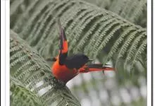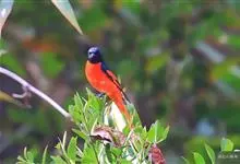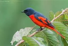 灰喉山椒鸟:共有8个亚种。体长18-22厘米。雄鸟头部和背亮黑色,腰、尾上覆羽和下体朱红色,翅黑色具一大一小的两道朱红色翼斑。中央尾羽黑色,外侧尾羽基部黑色,端部红色。…全部>>
