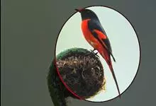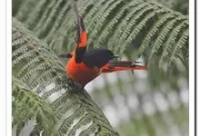 灰喉山椒鸟:共有8个亚种。体长18-22厘米。雄鸟头部和背亮黑色,腰、尾上覆羽和下体朱红色,翅黑色具一大一小的两道朱红色翼斑。中央尾羽黑色,外侧尾羽基部黑色,端部红色。…全部>>