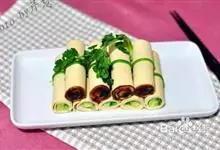 腐皮卷素菜是一道广东省的传统名菜,属于粤菜系。把香菇用清水浸软,去蒂,切细丝,胡萝卜,榨菜分别洗净,切细丝,豆芽,韭黄分别洗净,韭黄切段。用2汤匙油爆香姜丝,胡萝卜,榨菜,放入香菇同炒透,将豆芽放入…全部>>