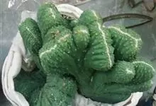 魁伟玉原产南非,是一种大戟科的多年生肉质植物,植株具粗圆筒形肉质茎,有10条以上的突出棱,表皮绿色至灰绿色,披有白粉,有较为明显、平行排列的深色横肋,刺生于棱缘上,红褐至深褐色,易脱落。小叶早脱落,…全部>>