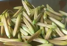 黄花菜 别名金针菜、柠檬萱草等,是阿福花科萱草属的多年生宿根性草本植物。根近肉质,中下部常有纺锤状膨大;叶7~20枚,长50~130cm,宽6~25mm;花葶长短不一,花梗较短,花多朵,…全部>>