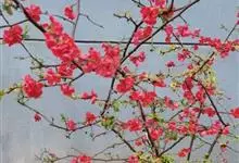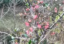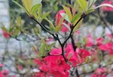 贴梗海棠Nakai)是蔷薇科、木瓜海棠属植物。落叶灌木,高达2米,枝条直立开展,有刺。叶片卵形至椭圆形,稀长椭圆形,长3-9厘米,宽1.5-5厘米。花先叶开放,3-5朵簇生于二年生老枝上。…全部>>