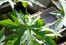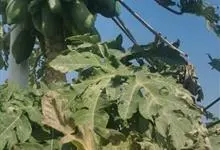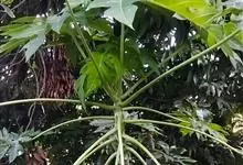 番木瓜,番木瓜科番木瓜属的常绿软木质小乔木,高达10米,具有乳汁;茎不分枝或有时于损伤处分枝;叶大且聚生于茎顶,近似盾形,叶柄中空;花单性或两性,有些品种雄株偶尔生两性花或雌花,…全部>>
