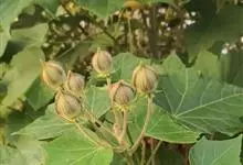 海滨木槿是锦葵科木槿属植物,落叶小乔木,株高3-5米,胸径20厘米,扁球形树冠,枝叶繁盛。厚纸质单叶互生,扁圆形、倒卵形或宽倒卵形,先端钝近平,具短突尖,基部圆形或浅心形,叶缘中上部具细圆齿,…全部>>