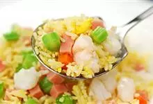 什锦炒饭是一道色香味俱全的名点,以江苏扬州的炒饭最知名。虾仁去泥肠洗净,加料酒、胡椒粉、淀粉上浆。胡萝卜洗净,切小片。蘑菇洗净、切块。将虾仁、豌豆粒、蘑菇倒入沸水锅中,焯烫至断生,捞出沥水。…全部>>