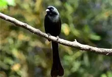盘尾树鹊,是雀形目鸦科的珍稀鸟类,是一种中等体型的近黑色树鹊。尾甚长而端部展开;通体体羽闪亮深灰色,并具铜绿色光泽;嘴粗厚而呈钩状;眼先蓝色。虹膜蓝色;嘴黑色;脚黑色。单独或成对活动,…全部>>