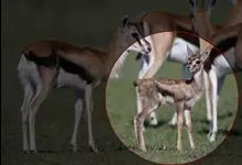 狍是鹿科、狍属的一种动物。体长约1.2米,体重约30千克,有着细长颈部及大眼睛,大耳朵。无獠牙,后肢略长于前肢,尾短,雄狍有角,雌性无角,雄性长角只分三个叉。狍身草黄色,尾根下有白毛,尾巴仅2-3厘米。…全部>>
