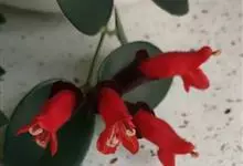 口红花 G.Don)是苦苣苔科,芒毛苣苔属常附生小灌木,茎长可达100厘米,圆柱形,叶对生,叶片革质,花数朵簇生茎或短枝顶端,花萼钟状筒形,花冠桔红色,裂片中央有暗紫色斑,花盘环状,蒴果线形,…全部>>