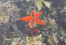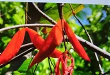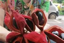 假苹婆是锦葵科苹婆属乔木植物。幼枝被毛;叶椭圆形或披针形,先端骤尖,基部钝或近圆无毛;圆锥花序腋生,花淡红色;蓇葖果鲜红色,长卵圆形或长椭圆形;种子卵圆形黑褐色;花期4-6月。…全部>>