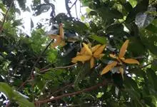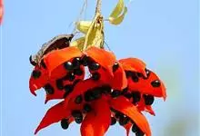 假苹婆是锦葵科苹婆属乔木植物。幼枝被毛;叶椭圆形或披针形,先端骤尖,基部钝或近圆无毛;圆锥花序腋生,花淡红色;蓇葖果鲜红色,长卵圆形或长椭圆形;种子卵圆形黑褐色;花期4-6月。…全部>>