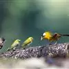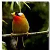 银耳相思鸟小型鸟类,体长14~18厘米。头顶黑色,耳羽银灰色,前额橙黄色;外侧飞羽橙黄色,基部朱红色,极为鲜艳、醒目。尾圆形,尾上、尾下覆羽朱红色,尾暗灰褐色,外侧尾羽橙黄色,其余上体橄榄绿或橄榄黄色。…全部>>