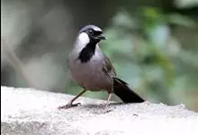 黑喉噪鹛是噪鹛属鸟类。体长24-29厘米,体重75-90克。雄鸟前额、眼先、眼周和眼后纹以及颊、须和喉黑色;黑色前额和蓝灰色头顶之间有道白色细斑;颈侧具椭圆形白斑,…全部>>