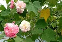 木芙蓉,锦葵科木槿属落叶灌木或小乔木。小枝上有细绒毛;叶片为卵状心形,托叶为披针形,常早落;花单生,花萼为钟形,花冠初为白色或淡红色,后逐渐变为深红色;果实为扁球形,有淡黄色的毛附着。花期8到10月。…全部>>