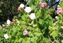 海滨木槿是锦葵科木槿属植物,落叶小乔木,株高3-5米,胸径20厘米,扁球形树冠,枝叶繁盛。厚纸质单叶互生,扁圆形、倒卵形或宽倒卵形,先端钝近平,具短突尖,基部圆形或浅心形,叶缘中上部具细圆齿,…全部>>