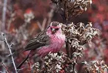 粉红腹岭雀:为燕雀科岭雀属的鸟类。体重25-34克,体长150-182毫米。是一种中等体型的深色岭雀。两翼及下体玫红色。东北亚种的雄鸟额、顶冠及脸灰;上背黄褐;上体深褐,…全部>>