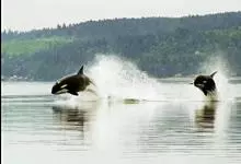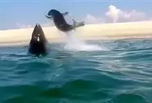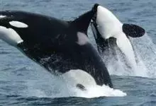 虎鲸,是鲸偶蹄目海豚科虎鲸属哺乳动物。成体体重6600千克,平均体长6-9米;头部略圆,…全部>>